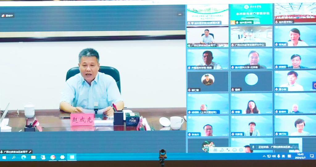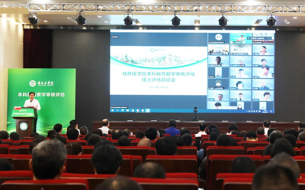5月7日上午,我华体网页版页面登录召开新一轮本科教育教学审核评估线上评估启动会,会议采取线上线下相结合的形式召开。广西壮族自治区教育厅二级巡视员赵成光,广西本科教育发展研究中心副主任、南宁师范大学副华体网页版页面登录长龙妮娜,由山东第二医科大学华体网页版页面登录长管英俊教授担任组长、西安医华体(中国)副院长和新盈教授担任副组长的教育部审核评估专家组全体成员,广西壮族自治区教育厅、广西本科教育发展研究中心相关负责人在线出席会议。我华体网页版页面登录全体华体网页版页面登录领导在临桂华体网页版页面登录区教学北楼多功能报告厅参会。会议由华体网页版页面登录党委常委、副院长李清华主持。