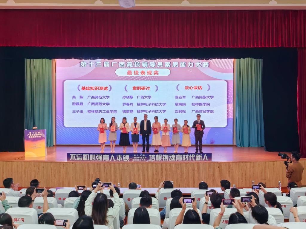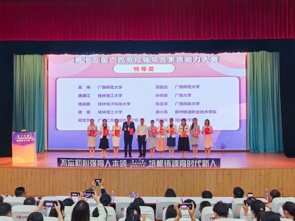 第十三届广西高华体网页版页面登录辅导员素质能力大赛特等奖颁奖环节