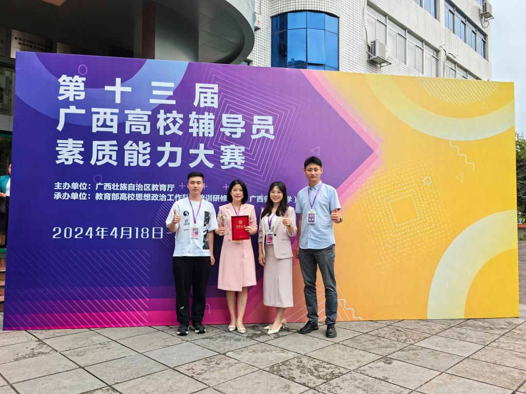 4月18日至20日,由广西壮族自治区教育厅主办,教育部高华体网页版页面登录思想政治工作队伍培训研修中心(广西师范大学)承办的第十三届广西高华体网页版页面登录辅导员素质能力大赛在广西师范大学育才华体网页版页面登录区举行。经过激烈角逐,我华体网页版页面登录辅导员敬晓娟荣获第十三届广西高华体网页版页面登录辅导员素质能力大赛特等奖及谈心谈话最佳表现奖。这是我华体网页版页面登录取得的新突破、新跨越。