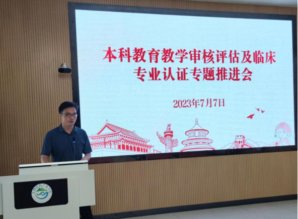 7月7日上午,药华体(中国)在华体(中国)2108教室召开本科教育教学审核评估及临床专业认证专题推进会,药华体(中国)领导班子,各教研室全体教师以及教学管理相关人员现场参加会议。会议由药华体(中国)副院长李芳耀主持,特邀教务处副处长李建周现场开展专项培训。