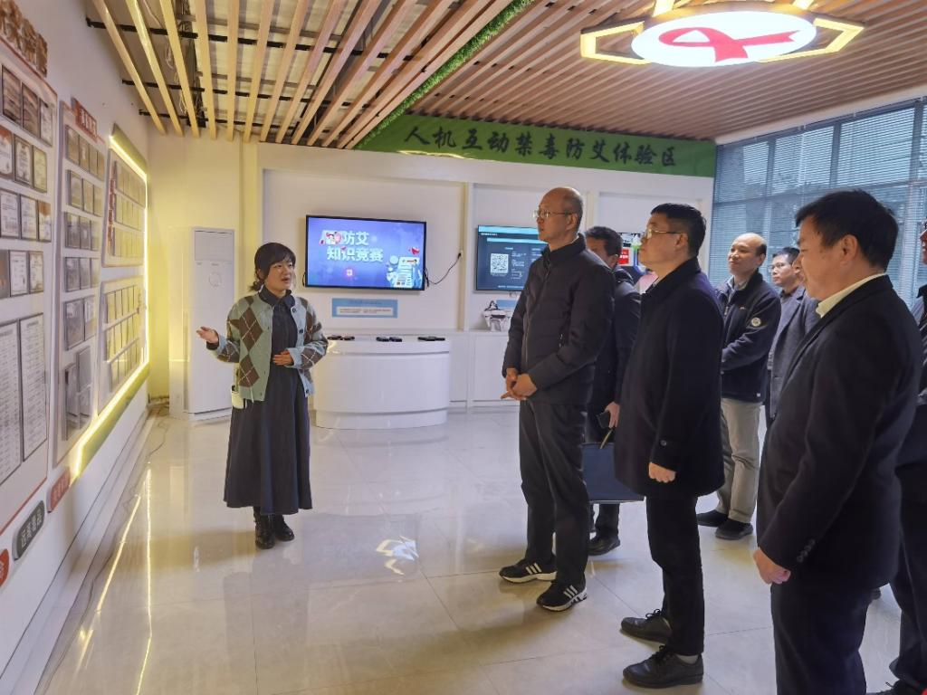 12月19日,自治区卫生健康委党组成员、副主任、自治区疾病预防控制局党组书记、局长林卫带领调研组一行到我华体网页版页面登录公共卫生华体(中国)调研,会后来到我华体网页版页面登录桂林市高华体网页版页面登录防治艾滋病宣传健康教育基地参观指导,桂林市卫生健康委员会、桂林市疾病预防控制中心、公共卫生华体(中国)相关负责人陪同。