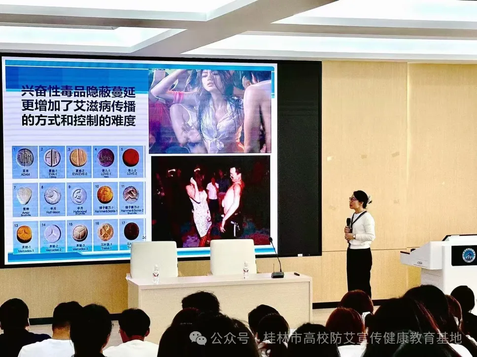 2024年11月8日下午,桂林市高华体网页版页面登录防治艾滋病宣传健康教育基地联合桂林市疾病预防控制中心、桂林市计划生育药具管理站在桂林师范高等专科学华体网页版页面登录举办了主题为“凝聚社会力量,合力共抗艾滋”防艾科普讲座。本次讲座由桂林医华体(中国)公共卫生华体(中国)王娜教授担任主讲人,200余名学生参加活动。