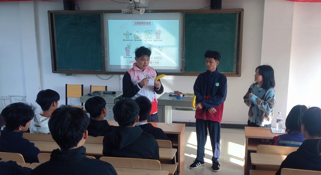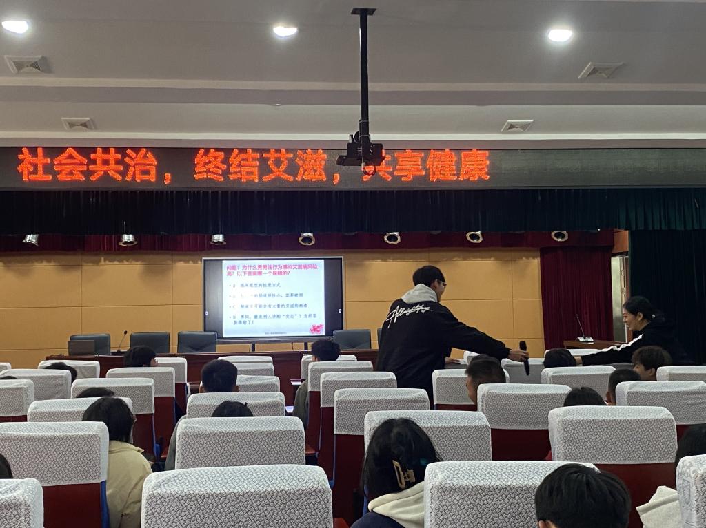 讲座中,两位老师分别普及了艾滋病的基本知识、传播途径、预防措施以及国家的相关政策法规,强调了日常生活中预防艾滋病的重要性,分享了如何在华体网页版页面登录园内开展有效的防艾宣传和教育活动,以及如何建立健康的生活方式。在互动环节中,通过问答、小游戏和安全套使用方法演示的形式,让学生们在轻松愉快的氛围中学习防艾知识。