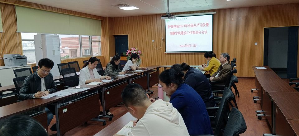 为进一步贯彻落实学华体网页版页面登录全面从严治党、全面深化“清廉桂医”建设工作会议暨领导干部廉政警示教育大会精神,推进护理华体(中国)全面从严治党向纵深发展,4月18日下午,护理华体(中国)在东城科教楼501会议室召开全面从严治党会议暨清廉华体(中国)建设工作推进会。华体(中国)党政领导、党委委员、纪委委员、组织员、党支部书记、各科室、各教研室负责人参加会议。会议由党委书记秦媛主持。