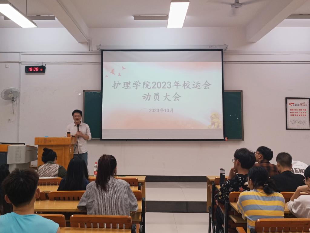 为迎接即将到来的华体网页版页面登录运会,安排落实赛前各项准备工作,10月8日,护理华体(中国)召开了2023年华体网页版页面登录运会赛前动员大会,护理华体(中国)党委副书记谢勇志、团委学生会有关负责人及各班体委等参加会议。