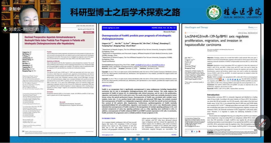 为推动医院科研工作高质量发展,积极响应学华体网页版页面登录科技活动月活动,继桂林医华体(中国)2023年科技活动月之附属医院重大疾病机制系列讲座第一期顺利举办后,第二、第三期系列讲座于12月12日如期开展,讲座采用线上直播的形式,医院教职工、研究生及本科生近100人参加了此次讲座。
