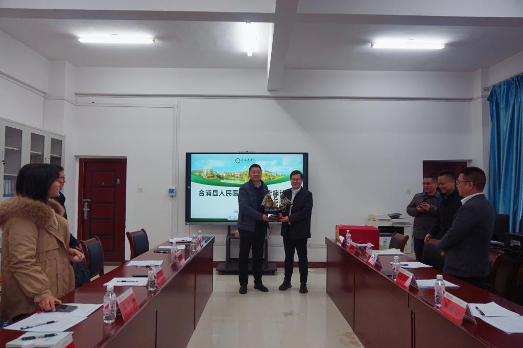 2月24日下午,合浦县人民医院党委书记赖天宁、副院长(主持行政全面工作)陈敬松一行来我华体网页版页面登录交流调研,双方在明德楼209会议室召开座谈会。教务处处长魏兵及相关工作人员参会,会议由教务处副处长莫中成主持。