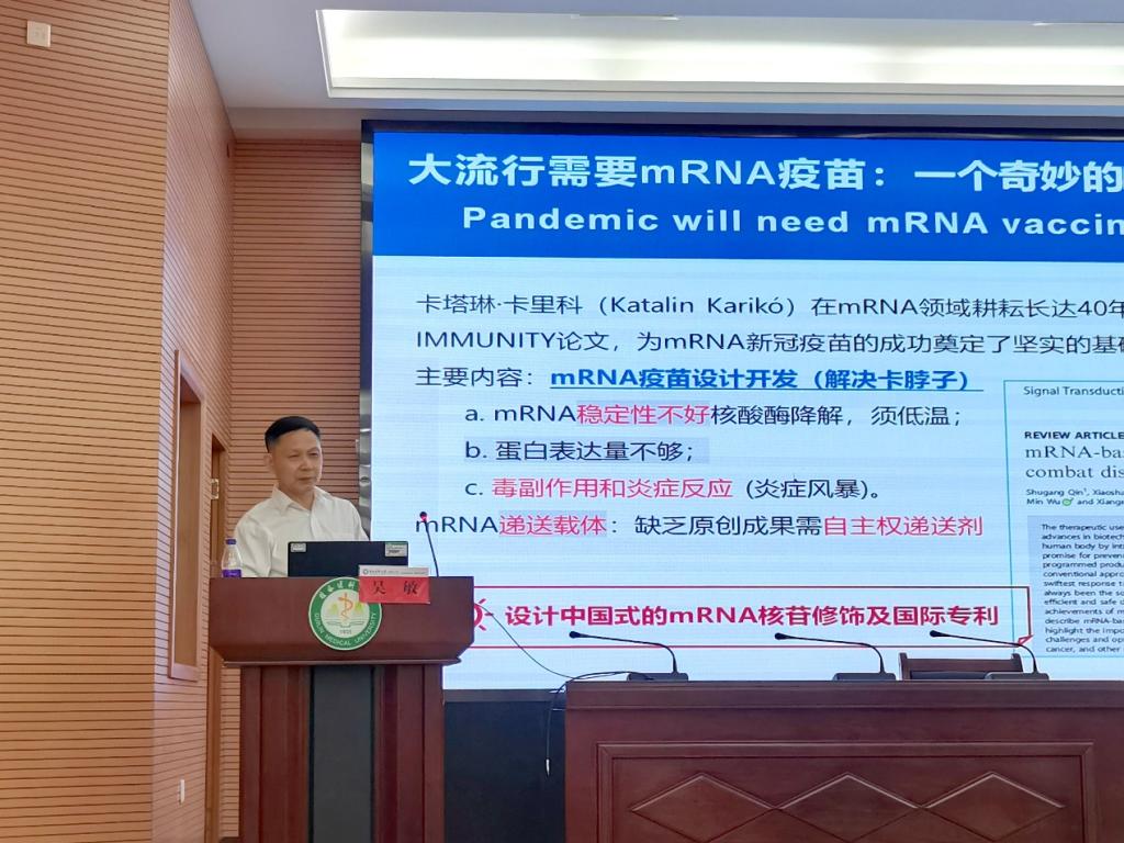 讲座中,吴敏教授介绍了基因编辑、mRNA疫苗在大流行疾病中的作用,重点介绍了Ⅲ型CRISPR基因编辑方法对冠状病毒的杀伤作用,并分享了其课题组在lncRNA和miRNA互作机制、基因编辑精准调控、以及Anti-CRIPSR、细菌免疫系统等方面取得的研究进展。吴敏教授的讲座以详实的数据、生动的讲解,深入浅出地向参会师生分享了其课题组取得的多项原创性研究成果。