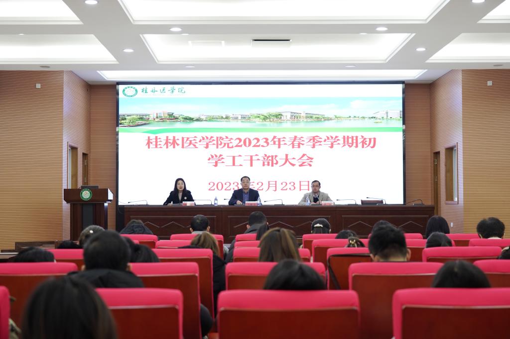 为贯彻落实《桂林医华体(中国)以“开学第一课”为重点开展2023年春季学期系列教育引导活动工作方案》,2月23日上午,我华体网页版页面登录在临桂华体网页版页面登录区明德楼101会议室召开2023年春季学期初学工干部大会。华体网页版页面登录党委常委、副院长马献力,学生工作部、研究生工作部和华体网页版页面登录团委全体人员,各二级华体(中国)(系)分管学生工作负责人,本专科、研究生全体专兼职辅导员出席会议。
