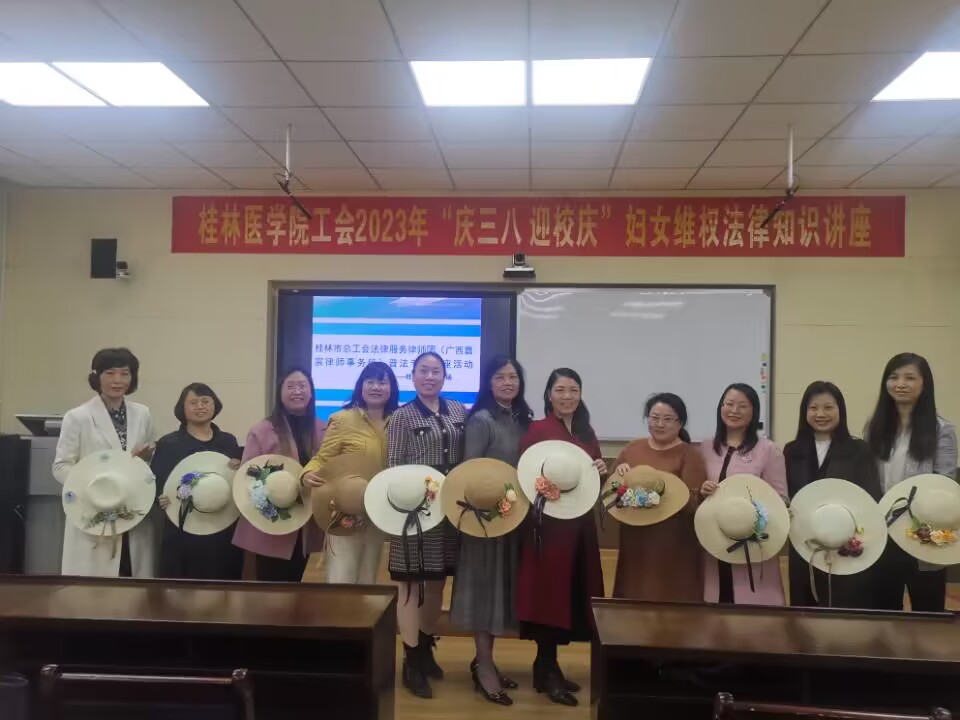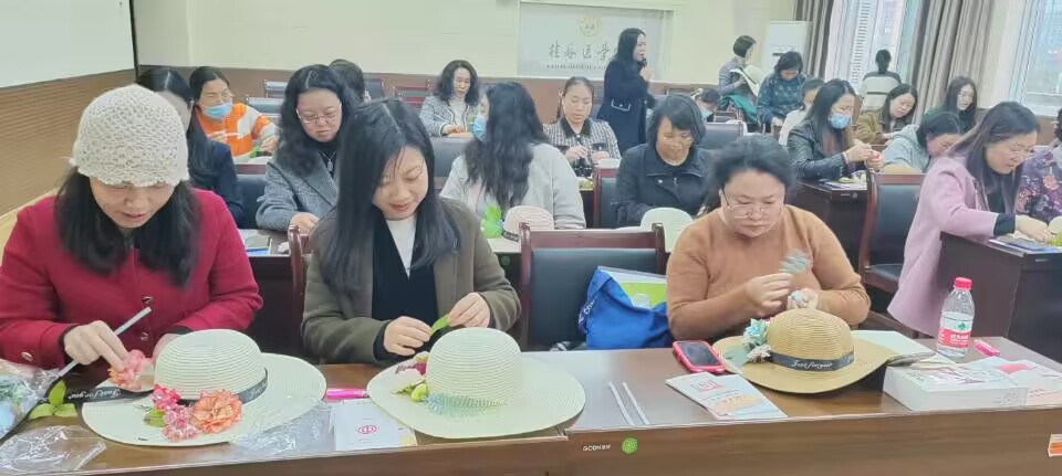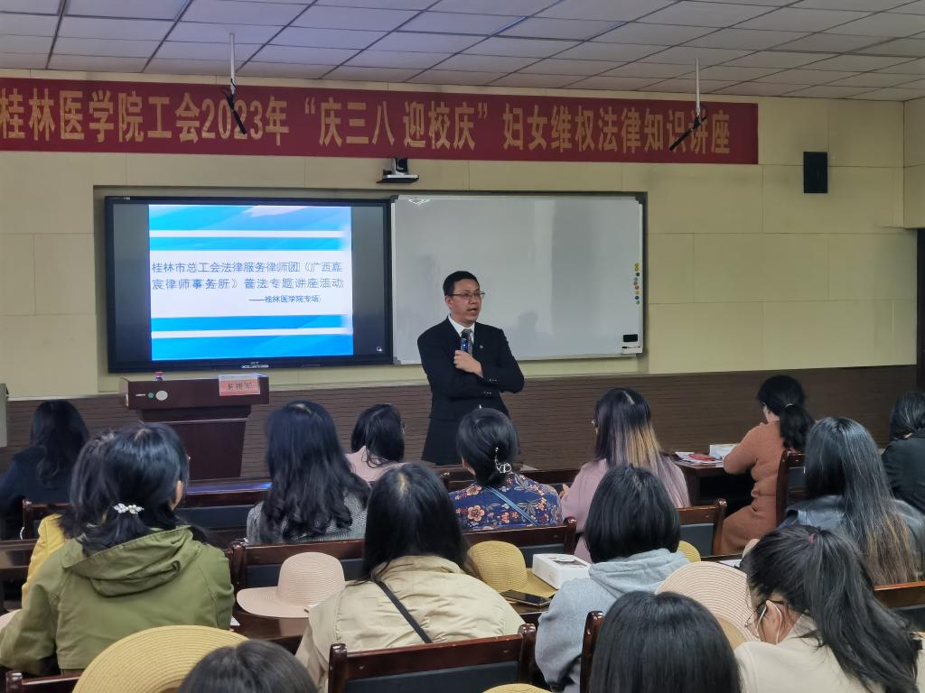 阳春三月,春意盎然。为庆祝第113个“三八”国际妇女节及建华体网页版页面登录88周年,提高广大女职工的法律意识,增强维护自身合法权益和自我保护能力,同时丰富女职工的文化生活,展现巾帼风采,3月6日下午,华体网页版页面登录工会、女工委在临桂华体网页版页面登录区明德楼202会议室组织开展“庆三八 迎华体网页版页面登录庆”妇女维权知识讲座及手工创意制作活动。此次活动邀请了广西嘉宸律师事务所龙拥军律师作专题讲座,近70名女职工参加了本次活动。