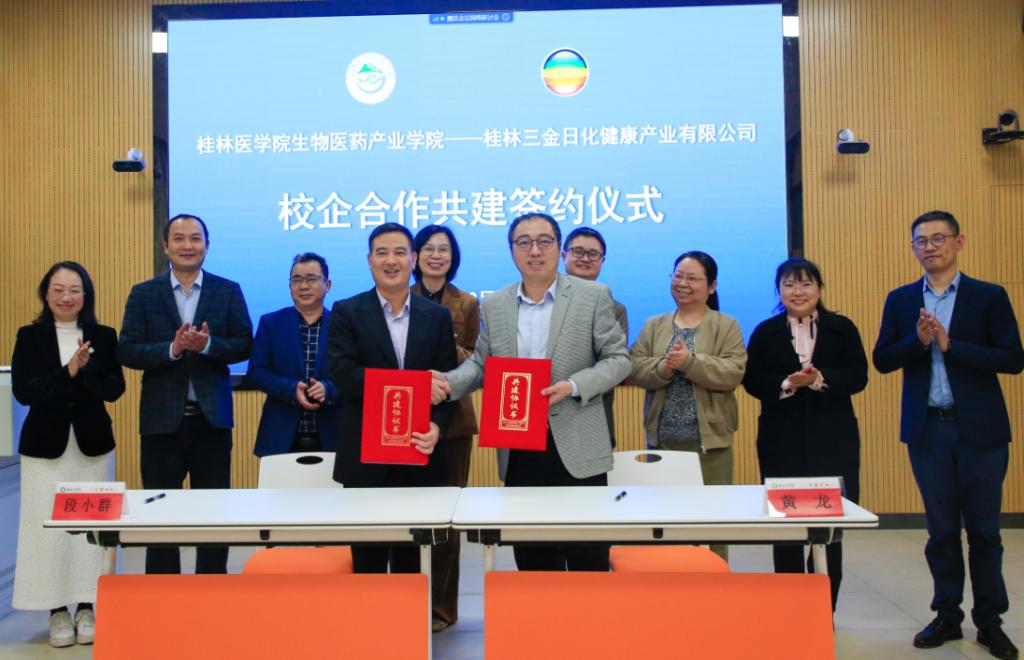为促进华体网页版页面登录企深度融合,建立合作共赢长效机制。日前,桂林医华体(中国)生物医药产业华体(中国)在临桂华体网页版页面登录区药学楼2108多功能厅以线上线下相结合的方式举办了“生物医药产业华体(中国)-三金日化合作共建协议签订仪式暨华体网页版页面登录企研制三金青蒿牙膏新品发布会”。学华体网页版页面登录党委常委、副院长陈旭,桂林三金日化健康产业有限公司黄龙总经理一行,生物医药产业华体(中国)院长,各相关直属部门主要负责人及生物医药产业华体(中国)班全体学生参加了此次活动。