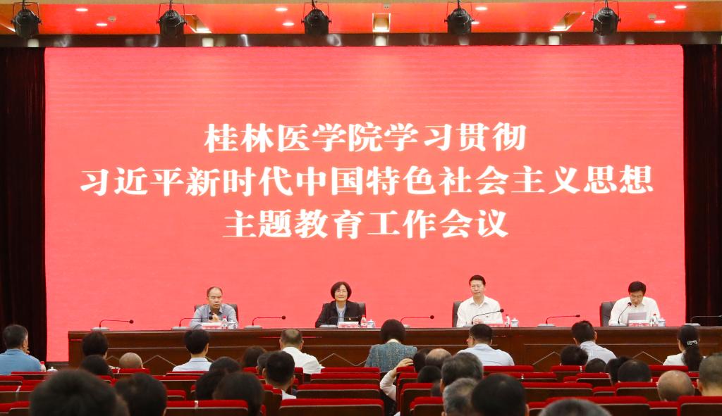 4月19日,我华体网页版页面登录召开学习贯彻习近平新时代中国特色社会主义思想主题教育工作会议。学华体网页版页面登录党委书记、院长、党委主题教育领导小组组长张志勇作题为《提高政治站位 抓好主题教育 为谱写中国式现代化广西篇章贡献桂医力量》的动员讲话。自治区党委主题教育第十四巡回指导组组长、桂林电子科技大学党委副书记陈贵英作指导讲话。学华体网页版页面登录党委副书记、党委主题教育领导小组副组长王赣华主持会议。巡回指导组成员、自治区市场监管局二级巡视员苏彩和同志,学华体网页版页面登录党委领导班子成员出席会议。
