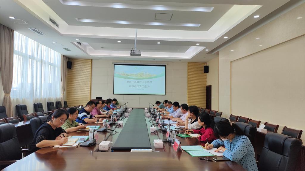 5月17日下午,广西科技大学总会计师韦锦义一行8人到华体网页版页面登录进行交流座谈,我华体网页版页面登录党委常委、总会计师周国增出席交流座谈会,财务处、国有资产管理处负责人及相关人员参加会议。