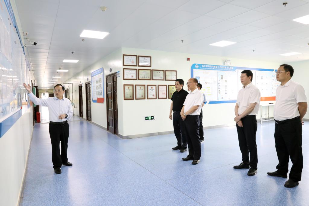 当天,廖品琥一行还调研了科学实验中心、广西肝脏损伤与修复分子医学重点实验室、学生公寓、新时代大学生党建文化中心等,参加了师生主题教育相关活动并给予指导。