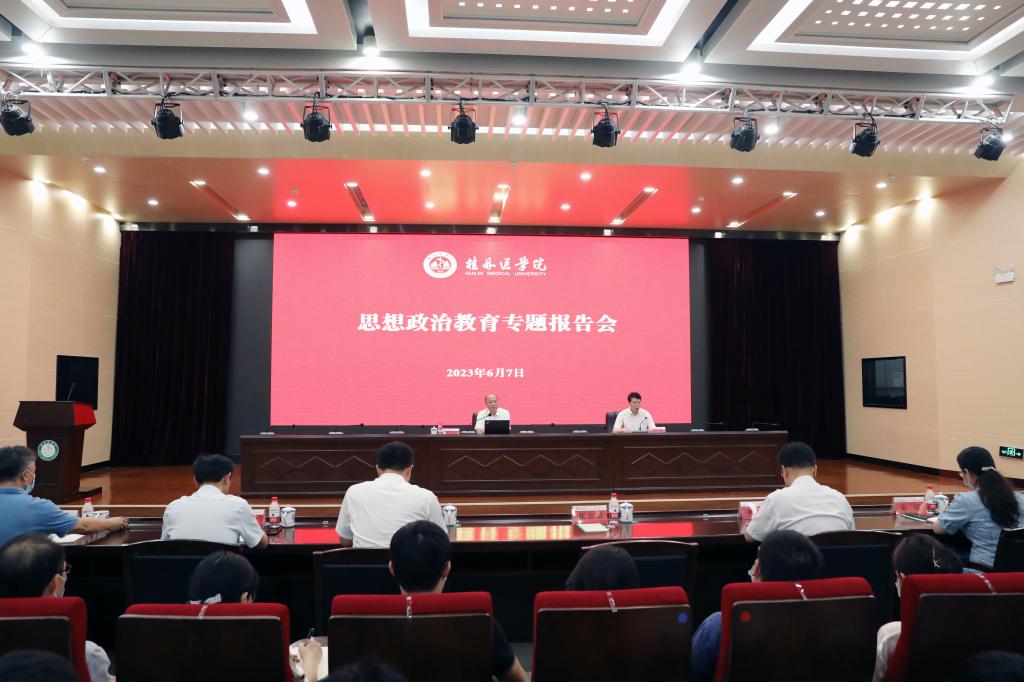 为贯彻落实中央、自治区关于领导干部上讲台开展思想政治教育的部署要求,6月7日下午,广西壮族自治区副主席廖品琥来到桂林医华体(中国),围绕学习贯彻党的二十大精神、推动健康广西建设为学华体网页版页面登录师生作题为《勇担历史使命主动担当作为在推动健康广西建设中谱写青春华章》的思想政治教育报告。我华体网页版页面登录党委书记、院长张志勇主持报告会。