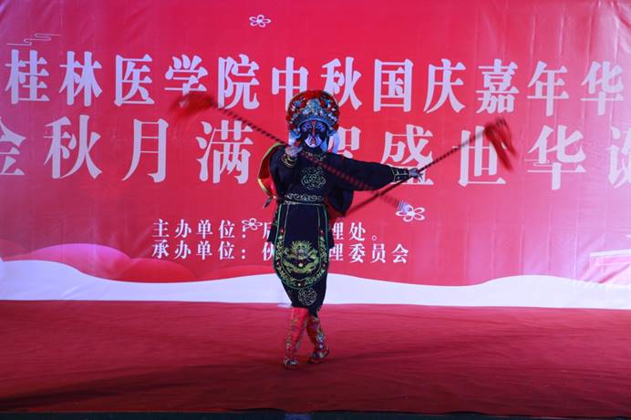 “庆中秋月满贺盛世华诞”晚会是一道中秋国庆双节文化盛宴,开幕式由龙狮队的表演开始,汉服走秀、国粹变脸、乐队表演、拉丁舞、歌曲串烧等节目陆续登场,现场气氛十分热烈。汉服走秀向大家展示华夏先人的思想与审美情趣,展示属于我们的文化自信。京剧变脸展现传统魅力与现代感。《我和我的祖国》由现场的师生共同参与,以歌声讴歌成就,用深情告白祖国。