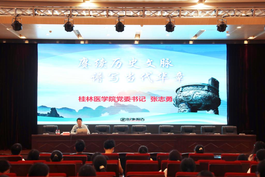 10月19日上午,掌声在临桂华体网页版页面登录区教学北楼多功能报告厅频频响起,华体网页版页面登录党委书记张志勇正在为2023级临床医学专业、2023级公共事业管理类专业的本科生讲授思想政治理论课。