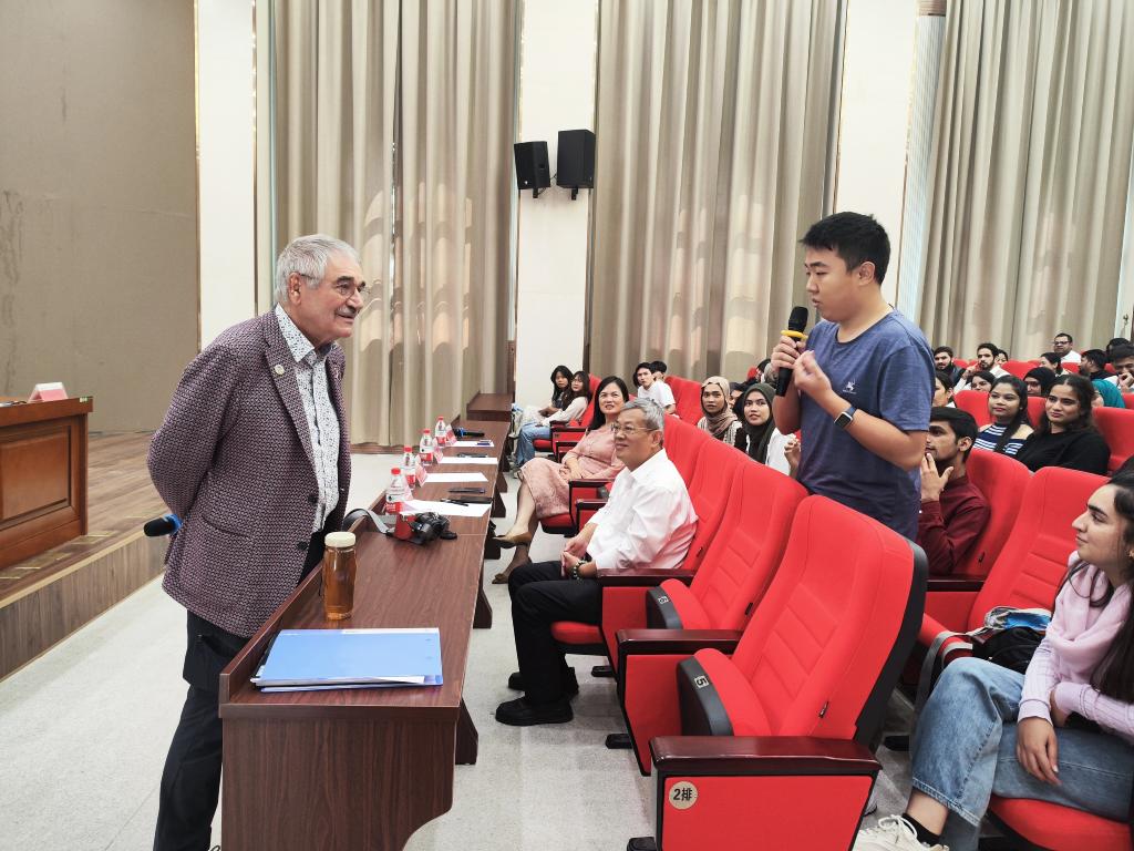 讲座结束后,同学们积极举手提问,用英语与李特尔教授交流互动,现场气氛异常热烈。来自2023级基础学硕班的刘承虎同学表示:“李特尔教授的讲座不仅让我了解到医学领域的要求,更让我意识到人文关怀和沟通技巧的重要性。”来自尼泊尔的外科学专业来华留学硕士研究生吴晓涛表示:“这次讲座让我更加明确了自己未来学习的奋斗目标,我会努力成为一名优秀的医生。”