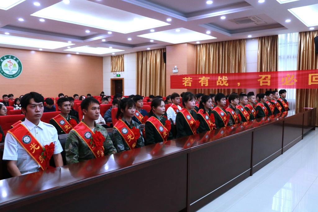 王赣华指出,深入学习贯彻习近平强军思想,巩固国防和强大人民军队是新时代坚持和发展中国特色社会主义、实现中华民族伟大复兴的战略支撑。“奋斗的青春最美,参军的儿女最酷。”退役复学同学经过部队的历练,实现了人生价值的一次重要飞跃,很多同学获得了嘉奖和奖励,体现了新时代桂医学子最美青春。