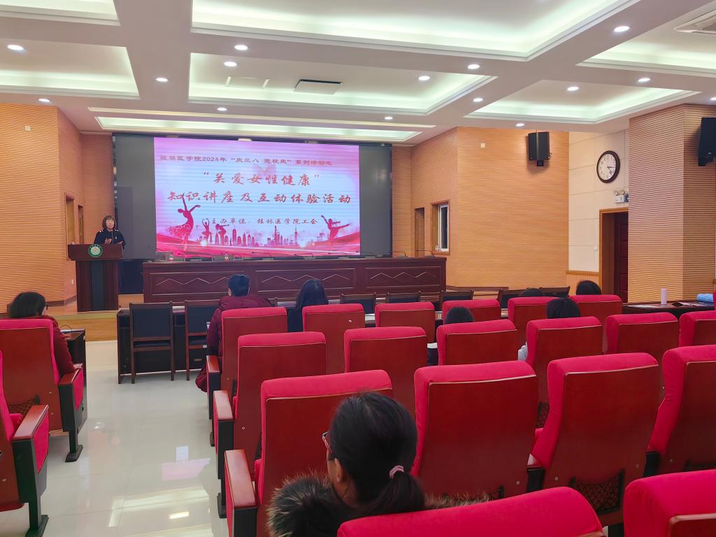 3月5日下午,女性中医保健知识讲座在科学实验中心一楼报告厅开讲,桂林市中医院专家从女性各阶段生理特点入手,结合临床经验,就妇科常见病、多发病的预防和治疗进行阐述,强调了中医在女性保健中的重要地位。她还特别介绍了如何通过按摩穴位来调理气血运行,增强身体免疫力,并现场指导师生进行穴位按摩,让大家亲身体验中医保健的魅力。