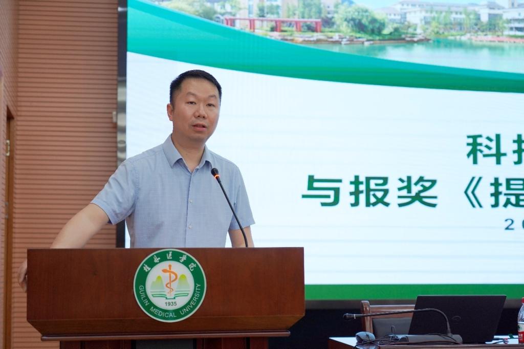 5月21日上午,我华体网页版页面登录在临桂华体网页版页面登录区明德楼101会议室举办主题为“科技奖励介绍与报奖《提名书》要点撰写”的专题讲座。华体网页版页面登录党委常委、副院长陈健出席并进行申报动员讲话,鼓励大家积极参与科技奖励申报工作。