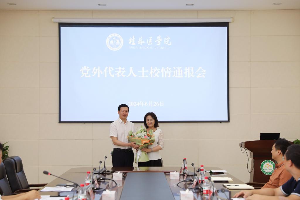 通报会前,会议特别安排了一个简短温馨的仪式,欢迎刚刚援非载誉归来,虽处在休养恢复期却积极主动参加统战活动的我华体网页版页面登录全科医华体(中国)副院长、广西中青年党外代表人士梁志清教授。当张志勇向她带去党的关怀和问候时,意外的惊喜让梁志清激动不已,也深深地感动了在场的党外代表人士。