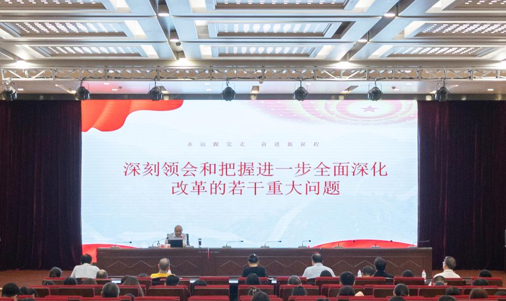 报告会上,田旭明以“深刻领会和把握进一步全面深化改革的若干重大问题”为题,重点围绕进一步全面深化改革的背景、主题、重大原则、重要举措、根本保证等方面,深入解读进一步全面深化改革的重大意义,系统阐述进一步全面深化改革的重大部署。