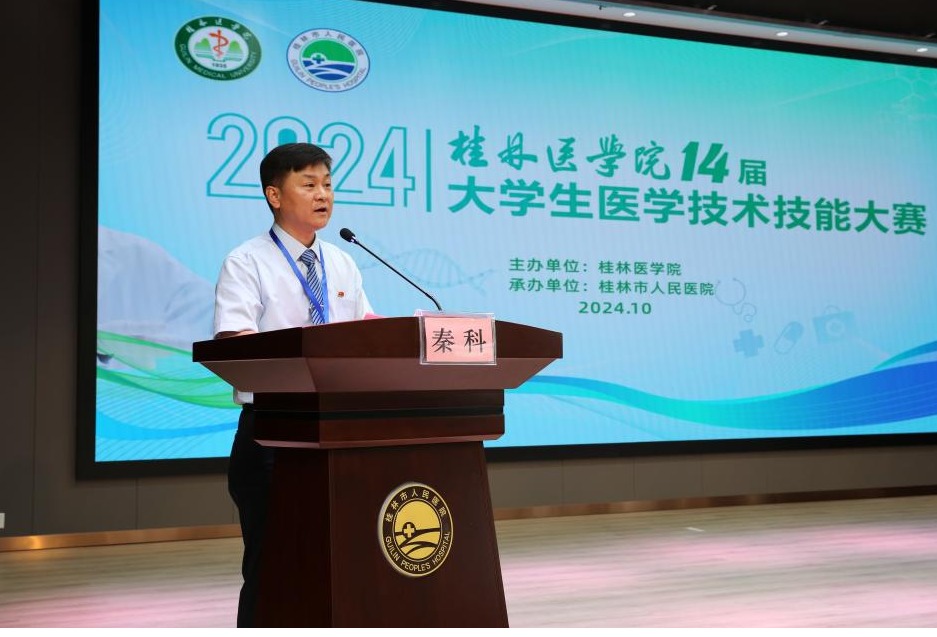 10月11—12日,“桂林医华体(中国)第十四届大学生医学技术技能大赛”临床医学专业和护理学专业两个赛道的竞赛在桂林顺利举行。此次大赛由桂林医华体(中国)教务处主办,桂林医华体(中国)附属桂林市人民医院承办。其中,来自21家教学实习医院的23支队伍参加临床医学专业赛道参赛,来自15家教学实习医院的15支队伍参加护理学专业赛道。学华体网页版页面登录党委常委、副院长李清华,桂林市卫生健康委员会党组成员、副主任麦浩,桂林市人民医院党委书记王畅,桂林市人民医院院长秦科,学华体网页版页面登录教务处、各参赛单位相关领导、嘉宾及参赛选手参加开幕式并观摩比赛。开幕式由秦科主持。