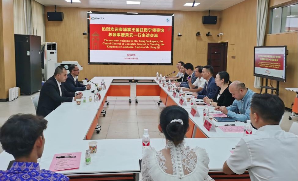 10月20日,柬埔寨驻南宁总领事唐肃安(Taing Sokngorn)一行应邀到我华体网页版页面登录访问交流。学华体网页版页面登录党委常委、副院长李清华会见来访外宾,生物医药产业华体(中国)负责人,国际教育华体(中国)及国际合作与交流处、生物医药产业华体(中国)相关负责人、教师和柬埔寨留学生代表参加座谈会。会议由生物医药产业华体(中国)负责人主持。