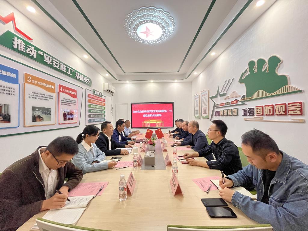10月24日下午,华体网页版页面登录党委常委、副院长覃克强带领武装保卫、学工、信息中心一行赴桂林理工大学雁山华体网页版页面登录区就学华体网页版页面登录平安华体网页版页面登录园建设、国防教育工作和安全教育基地建设开展调研。桂林理工大学党委常委、副华体网页版页面登录长罗盛锋热情接待了覃克强一行。
