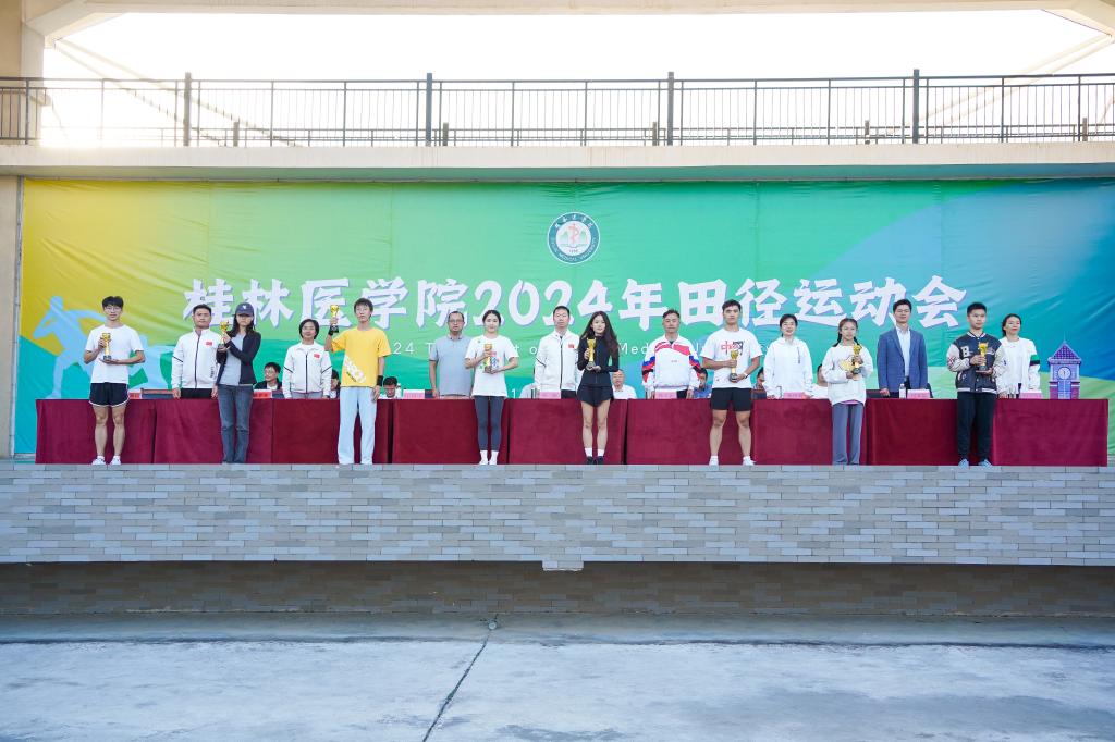 今年,桂林医华体(中国)多个赛事纪录被打破:人文与管理华体(中国)二队区祖潮以1.80米的成绩破跳高纪录;临床医华体(中国)一队林梓榆以8`81"、韦雨良7`31"破60米纪录;研究生代表队冯智晖以11`17"破100米纪录、以22`77"破200米纪录。获团体总分前八名的有临床医华体(中国)一队、护理华体(中国)六队、基础医华体(中国)联队、药华体(中国)二队、临桂临床医华体(中国)联队、公共卫生华体(中国)一队、研究生代表队、临床医华体(中国)二队。获女子团体总分前八名的有临床医华体(中国)一队、护理华体(中国)六队、基础医华体(中国)联队、临桂临床医华体(中国)联队、药华体(中国)二队、临床医华体(中国)二队、医学检验华体(中国)联队、智能医学与生物技术华体(中国)联队。获男子团体总分前八名的有临床医华体(中国)一队、护理华体(中国)六队、基础医华体(中国)联队、药华体(中国)二队、临桂临床医华体(中国)联队、研究生代表队、公共卫生华体(中国)一队、康复医学系联队。康复医学系联队、基础医华体(中国)联队、临桂临床医华体(中国)联队、智能医学与生物技术华体(中国)联队、口腔医华体(中国)联队五支队伍获评体育道德风尚奖。