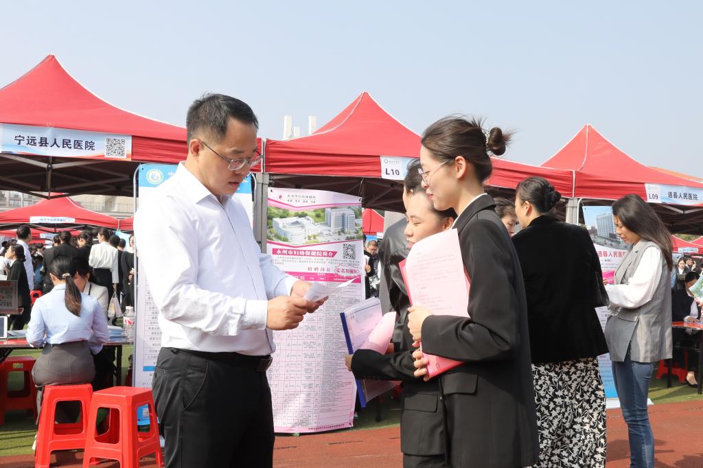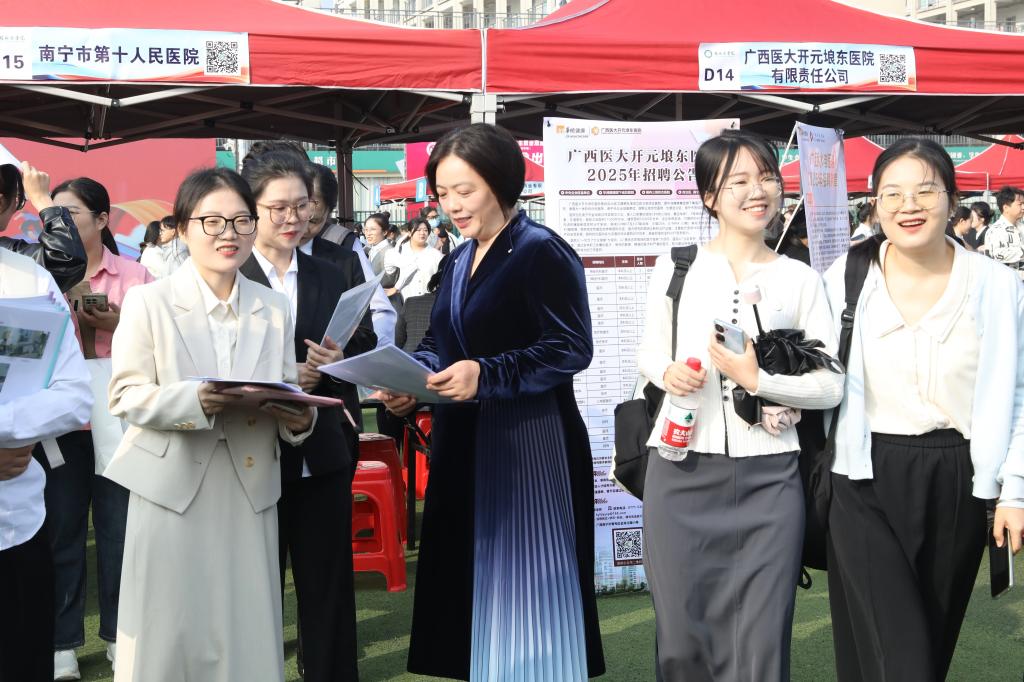 11月2日,广西2025届医药类高华体网页版页面登录毕业生就业双选会(桂林专场)在我华体网页版页面登录临桂华体网页版页面登录区火热举行。此次双选会吸引了广西区内外42个地市的378家各级医院、企事业用人单位入华体网页版页面登录招聘,为2025届毕业生提供 1496个职位、10883个岗位选择,本华体网页版页面登录及华体网页版页面登录外9863名医药类高华体网页版页面登录毕业生到场竞聘。