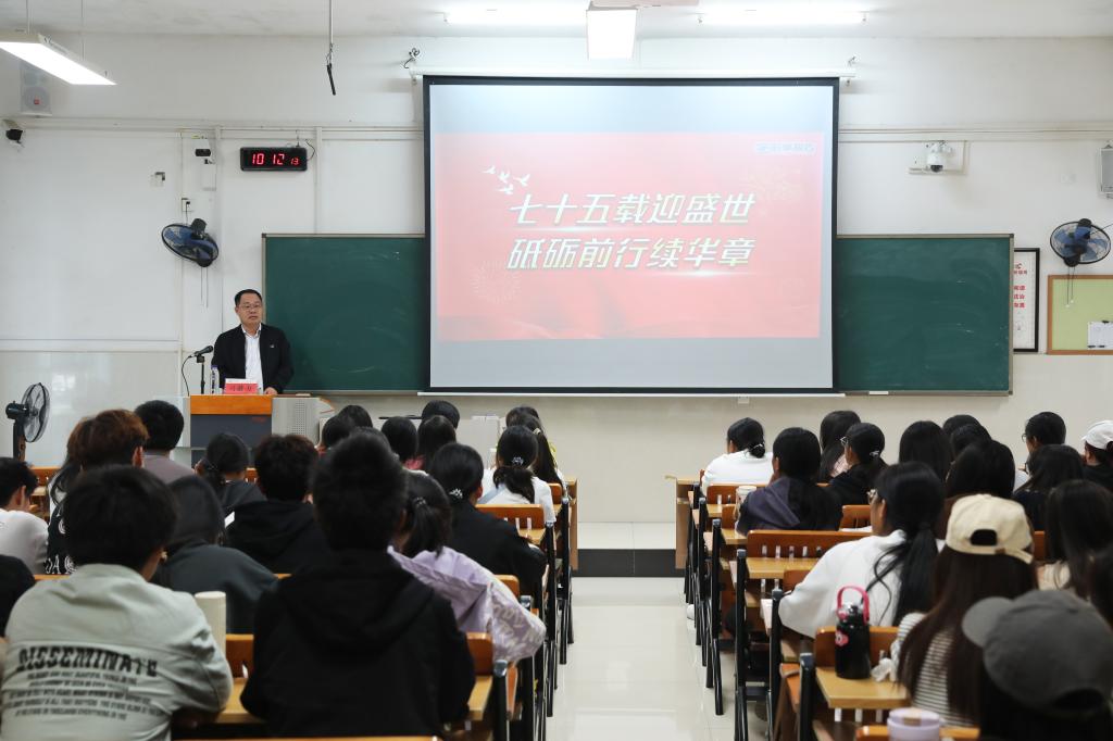 马献力以生动精炼的语言和丰富鲜活的事例旁征博引,他指出,75年来我们之所以能攻克一个又一个看似不可攻克的难关,夺取一个又一个看似不可能的伟大胜利,取得了一系列彪炳史册的辉煌成就,归根到底是中国共产党团结带领一代又一代中国人接续奋斗的结果。青年大学生要善于从新中国成立以来党和人民建设祖国的伟大实践中汲取智慧和力量,从一项项举世无双的成就中坚定“四个自信”、厚植爱国主义情怀。他激励同学们要立志成长成才,不惧风险挑战,自觉把个人理想同国家民族的命运紧紧联系在一起,把爱国情、强国志、报国行融入强国建设、民族复兴伟业中,努力成长为堪当时代重任的栋梁之才。