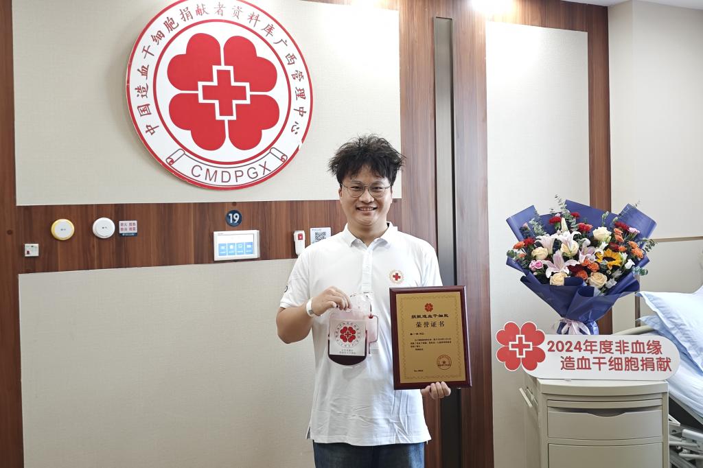 2019年在桂林医华体(中国)读本科时,磨一锋便通过学华体网页版页面登录组织的公益献血活动了解到造血干细胞捐献,并毫不犹豫地加入了中华骨髓库。5年后,一场“生命接力赛”摆在磨一锋的面前。今年4月,他接到电话,红十字会工作人员告诉他与一名血液病患者造血干细胞初次配型成功。消息来得突然,但不意外。“我愿意!”面对电话对面的问询,磨一锋立即给出答案,决定完成这场“生命接力赛”。之后的时间里,磨一锋经历了高分辨配型、捐献前体检等必要环节,并经严格的数据比对和专家的系统评估,各项指标均合格,可以进行造血干细胞捐献。“当听到我与对方的高分辨配型达99.9%,那一瞬间我非常开心。”磨一锋说道。
