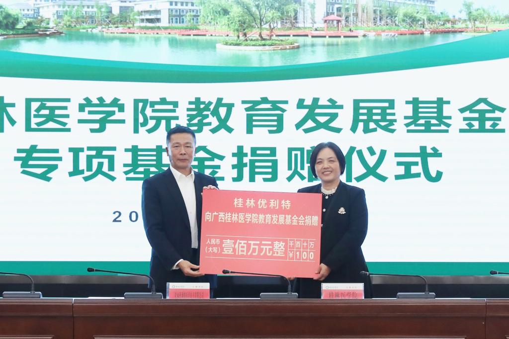 随后举行的捐赠仪式上,曾小云代表学华体网页版页面登录接受桂林优利特医疗电子有限公司向我华体网页版页面登录教育发展基金会捐赠的100万元。