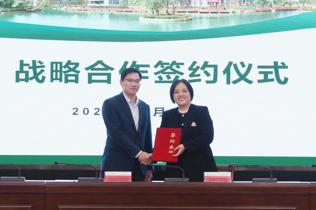 在签约仪式上,曾小云分别与潘争红、石平签订了《桂林医华体(中国)与广西壮族自治区中国科华体(中国)广西植物研究所战略合作框架协议》《桂林医华体(中国)与桂林优利特医疗电子有限公司战略合作框架协议》。