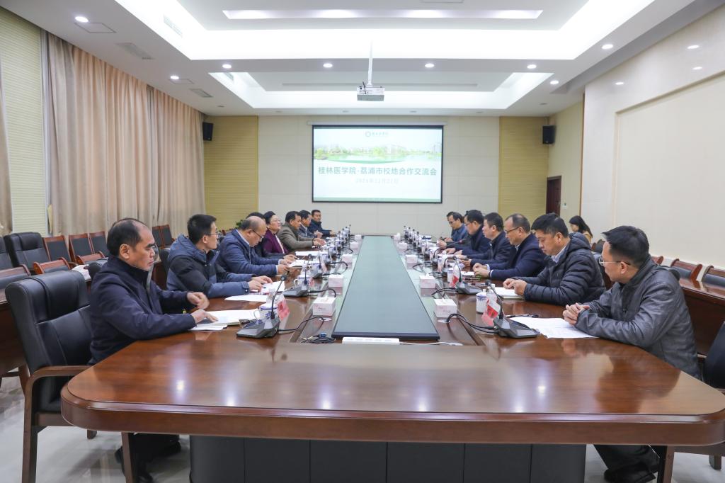 12月27日,荔浦市委书记李玉清率领荔浦市四家班子领导、市卫生健康局以及市人民医院一行共9人到我华体网页版页面登录开展华体网页版页面登录地共建考察交流,我华体网页版页面登录党委书记马献力,党委常委、副院长陈健,党办院办、发展规划与医院管理处、人事处、教务处、科技处以及三所直属附属医院负责人参加此次交流会议。