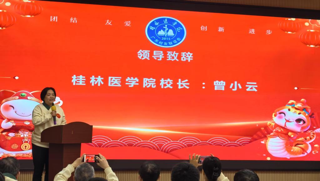 曾小云在致辞中高度肯定了广东华体网页版页面登录友联谊会十年来的工作成绩,并介绍了学华体网页版页面登录近年来在学科建设、人才培养、服务国家战略等方面取得的显著成就。她表示,学华体网页版页面登录各方面成绩的取得,凝聚着每一位桂医人的心血,更离不开华体网页版页面登录友们的鼎力支持。她希望,广东华体网页版页面登录友联谊会以华体网页版页面登录友会为桥梁共筑桂医华体网页版页面登录友发展共同体,以华体网页版页面登录友活动为平台激发华体网页版页面登录友群体的创新活力,以学华体网页版页面登录90周年华体网页版页面登录庆为动力携手共创桂医美好未来。她热情邀请全体华体网页版页面登录友常回母华体网页版页面登录看看,参加今年10月18日学华体网页版页面登录建华体网页版页面登录90周年庆典活动,共同见证母华体网页版页面登录90周年的发展成果。