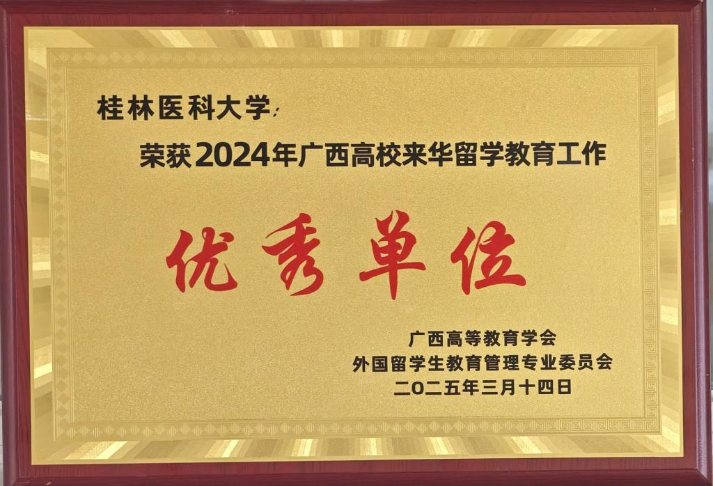 我华体网页版页面登录荣获2024年广西高华体网页版页面登录来华留学教育工作“优秀单位”称号
