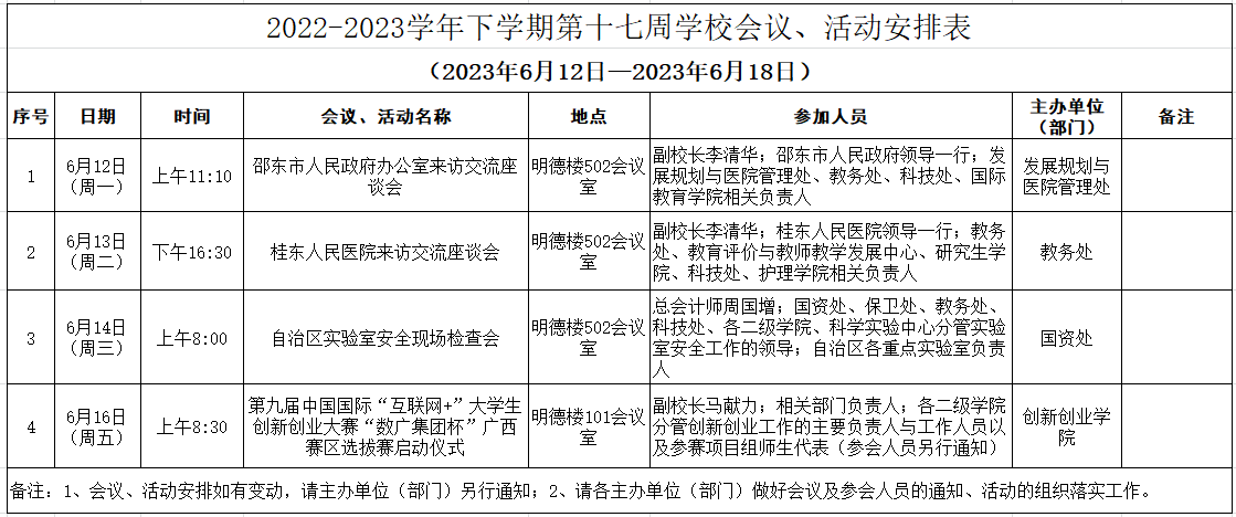 2022-2023学年下学期第十七周学华体网页版页面登录会议、活动安排表(2023年6月12日—2023年6月18日)
