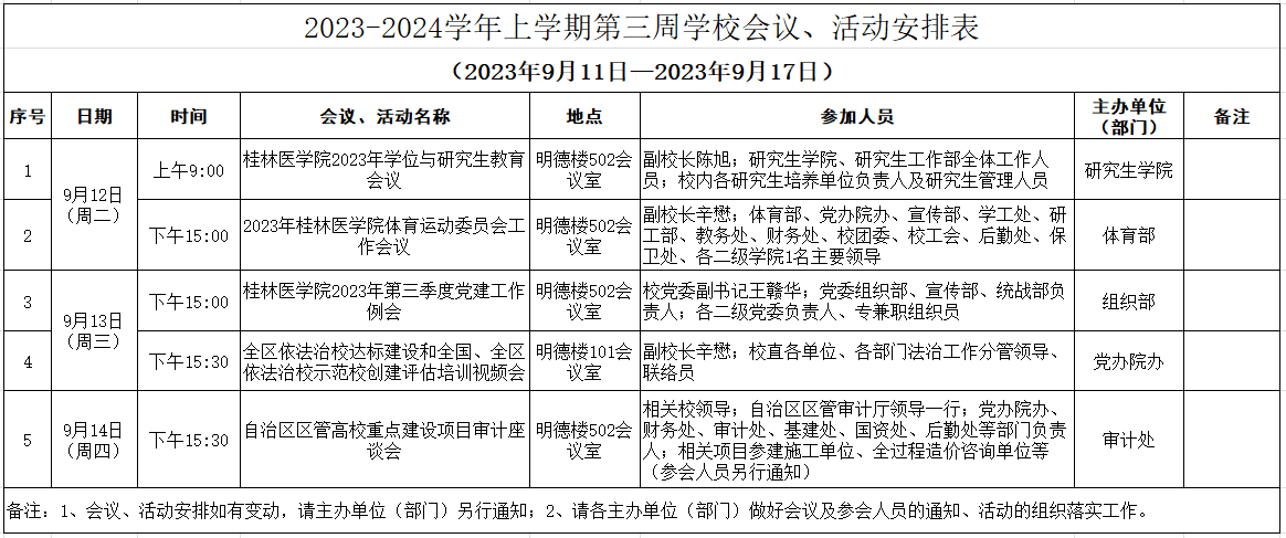 2023-2024学年上学期第三周学华体网页版页面登录会议、活动安排表(2023年9月11日—2023年9月17日)