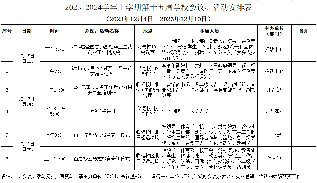 2023-2024学年上学期第十五周学华体网页版页面登录会议、活动安排表(2023年12月4日—2023年12月10日)