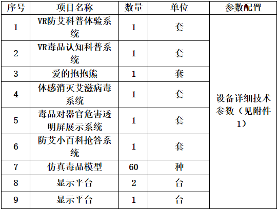 附件1桂林市高华体网页版页面登录防治艾滋病宣传健康教育基地设备采购项目需求表