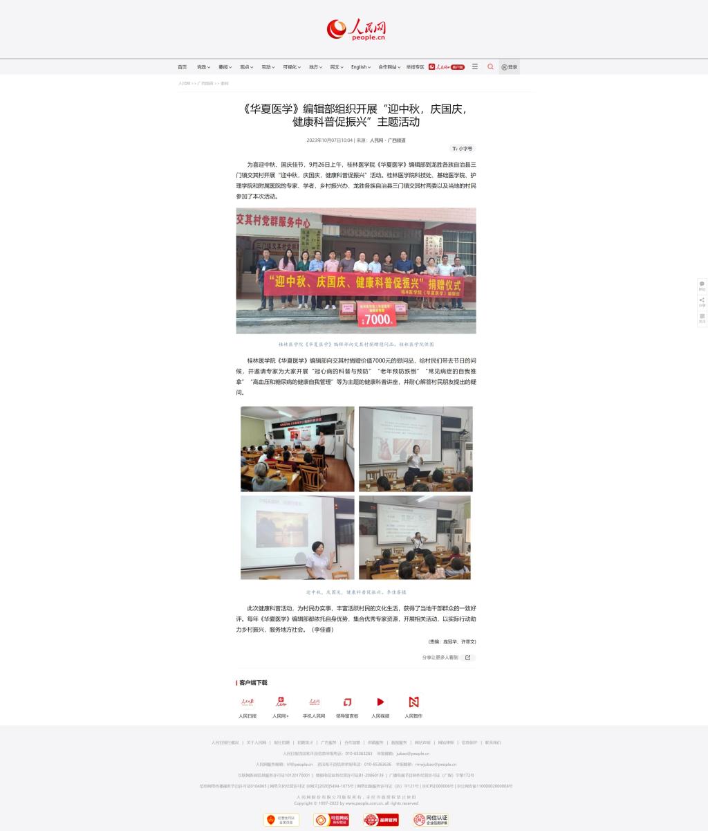 【人民网】《华夏医学》编辑部组织开展“迎中秋,庆国庆,健康科普促振兴”主题活动
