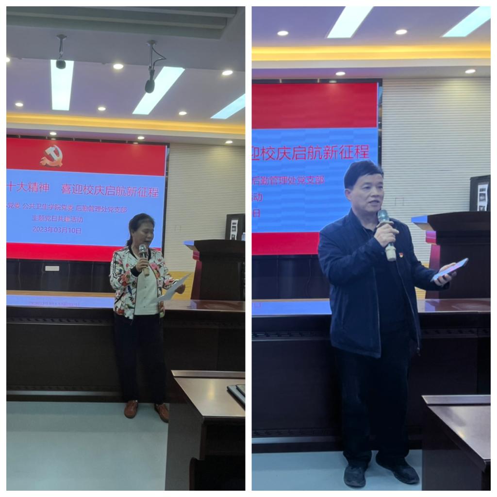 为深入学习贯彻党的二十大精神,在学华体网页版页面登录88周年华体网页版页面登录庆来临之际,3月10日下午,公共卫生华体(中国)党委、离退休党委和后勤管理处党支部联合开展主题为“学习贯彻二十大精神,喜迎华体网页版页面登录庆启航新征程”的主题党日共建活动。华体网页版页面登录离退休党委的老党员、后勤管理处和公共卫生华体(中国)的师生代表出席了本次活动。