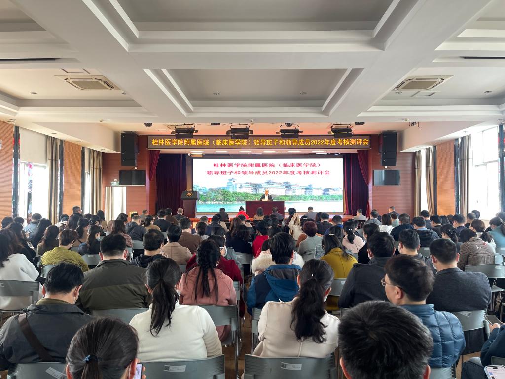 3月13日下午,附属医院(临床医华体(中国))召开领导班子和领导干部2022年度考核测评大会。学华体网页版页面登录组织部常务副部长、机关党委书记韦日明同志和组织部干部监督科科长到会指导相关工作。医院党委书记覃克强主持会议,医院领导、行政部门负责人、临床医技科室负责人、护士长、职工党支部书记和正高职称人员代表参会。