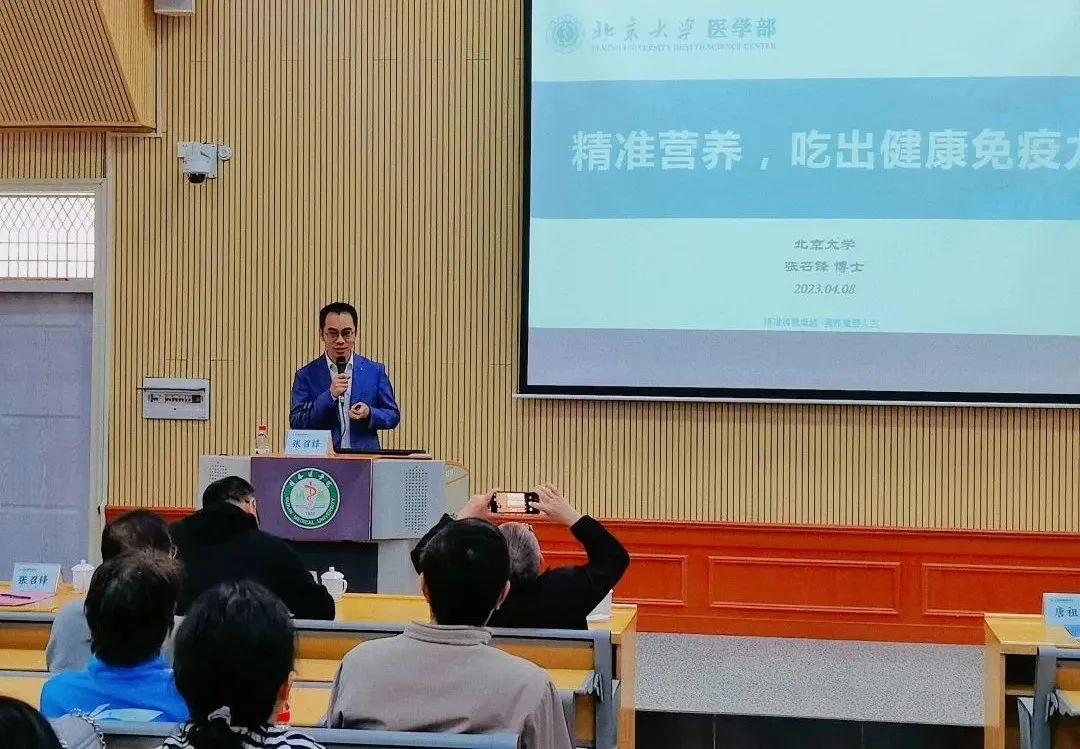北京大学张召锋教授从“免疫基础知识”“营养与免疫的关系”“中国人营养饮食现状”“如何维护免疫系统健康”等方面阐述如何进行精准营养,吃出健康免疫力。张教授运用通俗易懂的语言向大家讲述错误的饮食习惯、不健康饮食的危害以及健康饮食推荐的相关内容,参会人员纷纷表示十分受用。