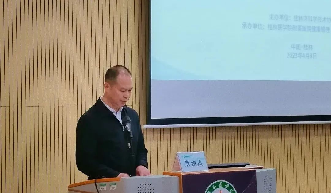 桂林市科学技术协会党组成员、副主席唐祖杰,附属医院副院长王群出席会议并致辞。