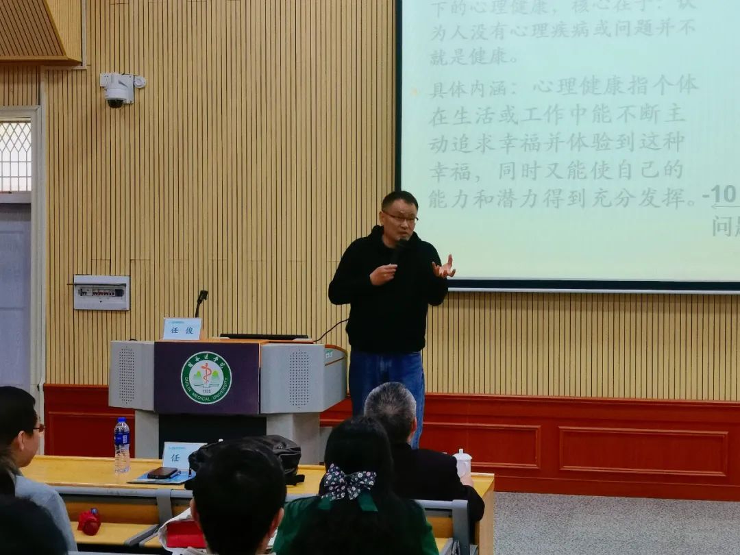 浙江师范大学任俊教授从“什么是积极心理健康”“我国心理健康现状”“实现积极心理健康的基本原则”这几个方面阐述了心理对机体免疫力的影响。他通过风趣幽默的言语分享了“豆豆小鼠”实验,引得会场笑声不断,也从侧面表明“成功教育与挫折教育都具有必要性,而且要合适!对于强者要进行适度挫折教育,而对于弱者则要用成功教育”。