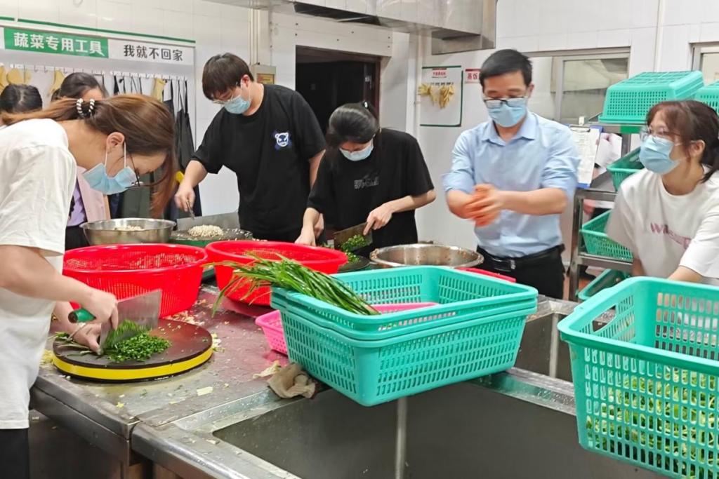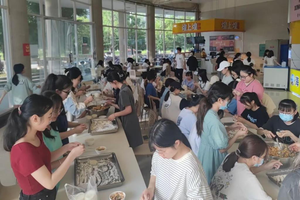 活动如火如荼地进行着,老师、同学们与餐厅师傅各显神通,围在一起切菜、擀面皮、剁馅调馅,左手托着饺子皮,右手用勺子挑取肉馅,食指蘸取适量清水于饺子皮边缘,双手将饺子皮捏紧,一个个花朵形、元宝形、小笼包形的饺子便诞生在同学们手中。活动过程,同学们团结合作的意识与能力,传递出浓浓同窗情,更体现出各民族团结友爱的美好品德。